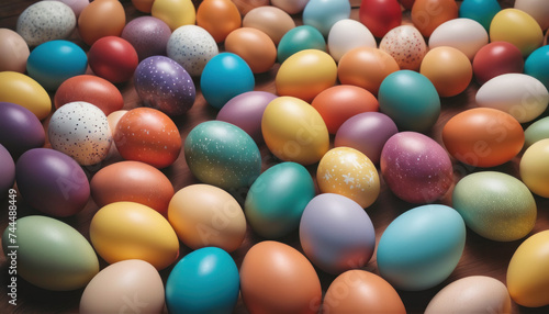 Easter colorful eggs pink, blue, green and white. Easter celebration concept.