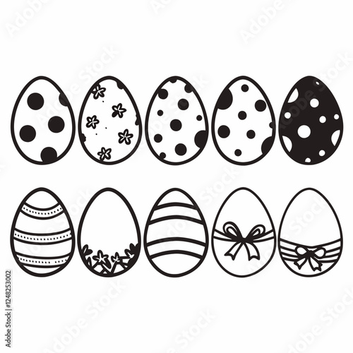 Easter Egg Silhouette Vector, Easter Egg Vector, Hand drawn set of Easter eggs doodle, Easter eggs icons set