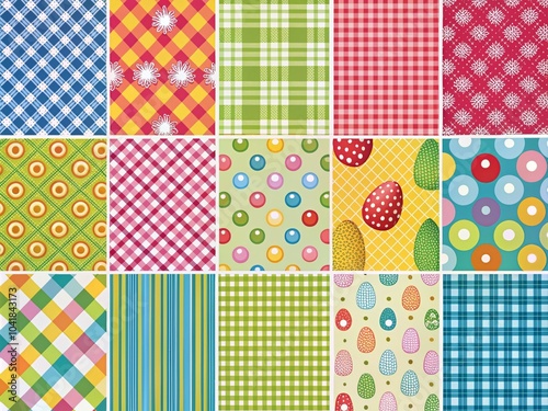 Easter Eggs Gingham Polka Dot Striped Pattern Collection for Web and Picnic Tablecloths