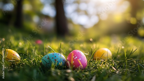 Easter Eggs Hidden in Lush Green Grass