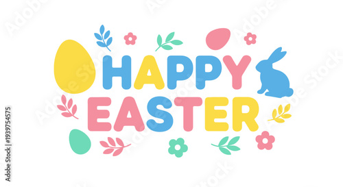 Easter Greeting Typography Layout with Four Solid Colors Illustration