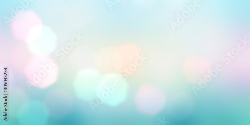 Easter holiday bokeh banner. Pastel pink blue green gradient. Spring lights pattern. Cool background. Light wonderful illustration.