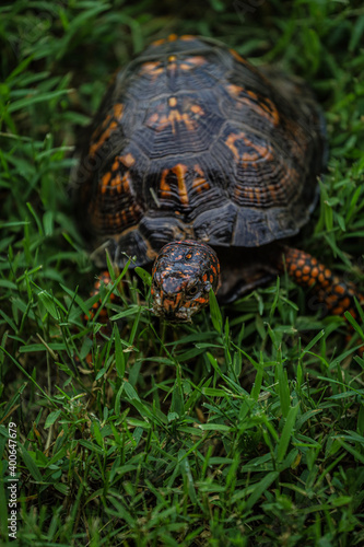 Eastern Box Turtle Strolling in Grass