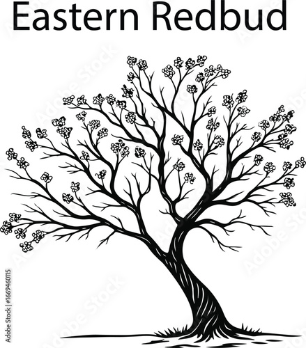 Eastern Redbud Tree Silhouette with Blossoms – Vector Illustration