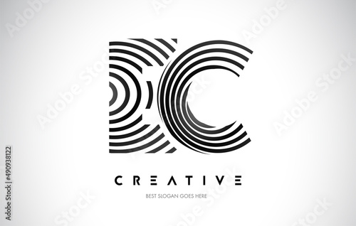 EC Lines Warp Logo Design. Letter Icon Made with Black Circular Lines.