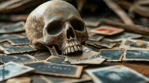 Echoes of the Past: Skull and Vintage Photographs Composition