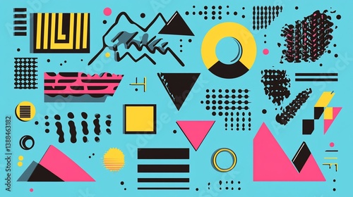 Eclectic geometrical arrangement with retro touch evoking the nineties flair