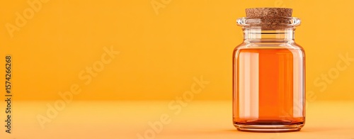 Eco Friendly Pet Products A glass jar filled with golden liquid resting on a vibrant yellow background.
