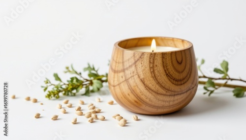 eco seed infused candle holder infused with fennel seeds, styled with minimalist organic surface, eco conscious production, isolated on pure white background with no shadow.