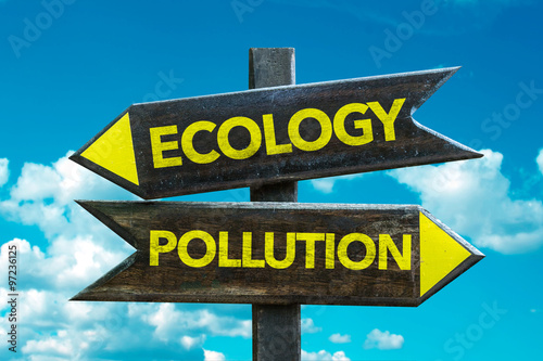 Ecology - Pollution signpost with sky background
