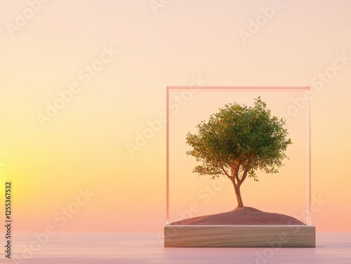 Eco-Luxury Decor Bonsai Tree Encased in Glass on Wooden Base - Sustainable Art in Modern Interiors and Green Workspace Innovations