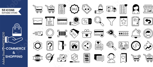 E-commerce and Shopping icons set in duotone style. Contains icons related to Online shopping, shipping and delivery, E-business, shopping cart and more. Vector illustration