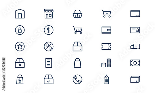 Ecommerce icon representing online shopping, digital sales, and internet commerce in outline style