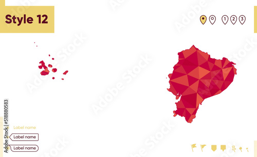 Ecuador - red low poly map, polygonal map. Outline map. Vector illustration.