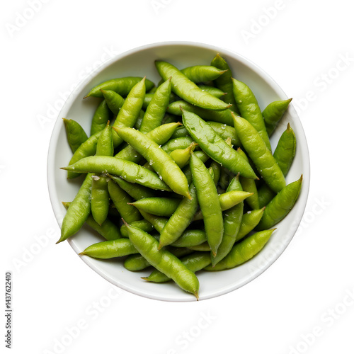 Edamame Bowl, Fresh Green Soybeans with Salt - transparent background