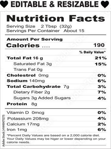 Editable nutrition facts label vector template for Classic Food Packaging Design