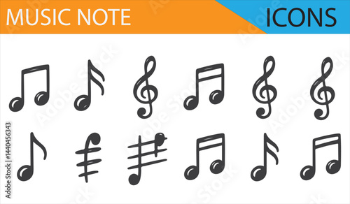 Editable stroke musical note icons set, perfect for music and audio design projects