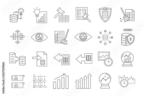 editable stroke of data analysis line art illustration on white background