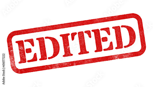 Edited red rubber stamp isolated on transparent background with distressed texture effect