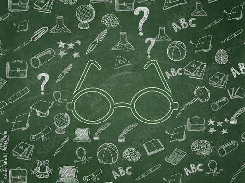 Education concept: Glasses on School Board background