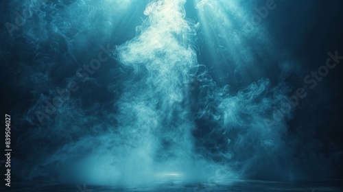 Eerie Cinematic Smoke in Spotlight - Dramatic Silhouette with Double Exposure Stage Setting, Close-Up Focus, Copy Space for Text Overlay
