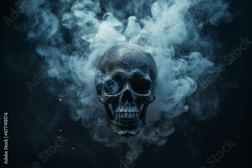 Eerie skull rising from smoke intense image