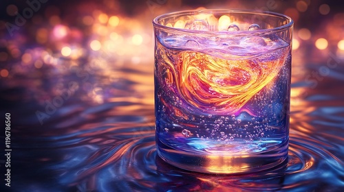 Effervescent tablet dissolving in a glass of water with swirling patterns and bubbles illuminated by soft studio light capturing freshness