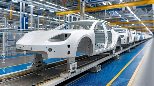 Efficient modern car assembly line in bustling factory optimizing production process