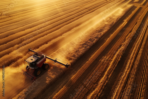 Efficiently Harvesting Wheat Using a Modern Combiner in Beautiful Golden Fields of Grain. Generative AI