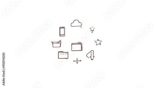 Eight minimal doodle icons for digital productivity