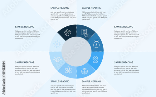 Eight step circle shape infographics template design, 8 option infographics design for PPT