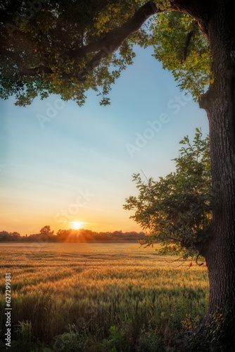 ein Getreidefeld während des Sonnenuntergangs