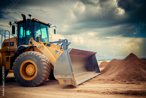 Ein Radlader in Aktion: Sandabbau auf einer Baustelle - Generative Ai