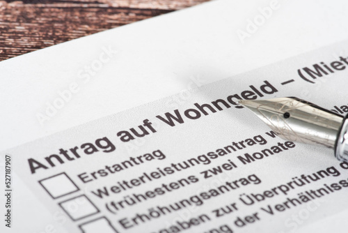 Ein Stift und Antrag auf Wohngeld