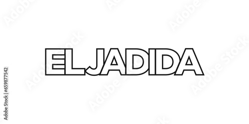 El Jadida in the Morocco emblem. The design features a geometric style, vector illustration with bold typography in a modern font. The graphic slogan lettering.
