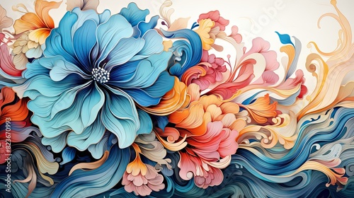 Elaborate and colorful floral digital art piece expressing beauty, growth, and the harmony of nature through stylization