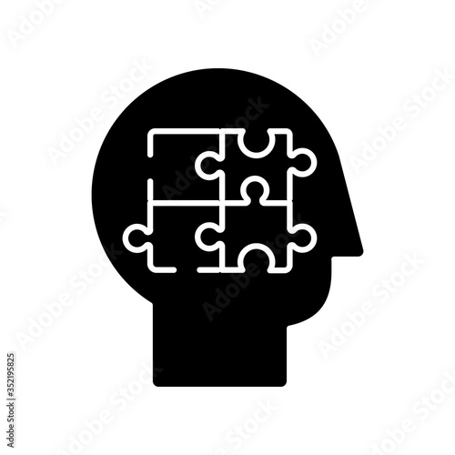 Elaboration black glyph icon. Puzzled mind. Logical mindset. Counseling for psychological problem. Analysis for smart solution. Silhouette symbol on white space. Vector isolated illustration