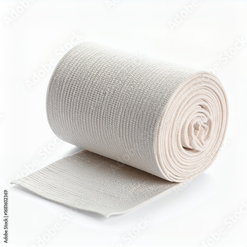 Elasticated compression bandage roll for first aid wound care isolated on white background