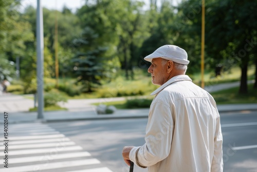 Elderly man with cane walking in park