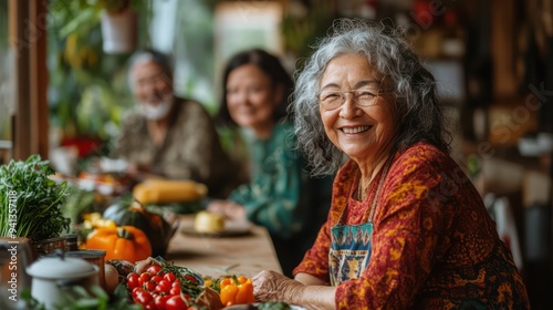 Elderly people organize community activities from a shared home. It demonstrates leadership, cooperation, and the social benefits of inclusion.