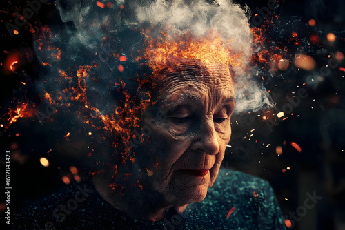 Elderly Woman Portrait Expression Smoke Fire Emotions Transformation Light