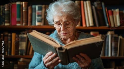 Elderly Woman Reading in a Quiet Room with Soft Lighting