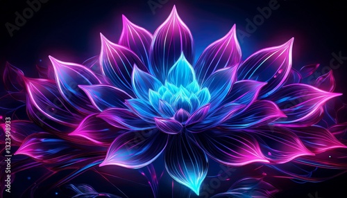 Electric Blue & Magenta Floral Outlines. Glowing, sleek black sci-fi background. Modern, vibrant, futuristic design