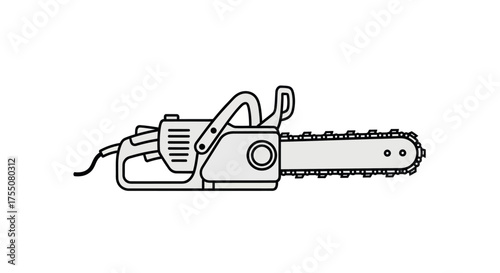 Electric Chainsaw Illustration with Black Outline and Gray Fill.