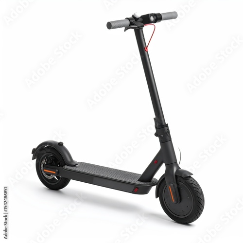 Electric scooter parked on white background