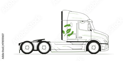 Electric Truck EV Semi Decarbonization Minimalist Line Art
