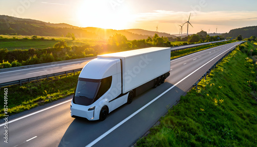 Electric Truck Highway Sunset Drive.