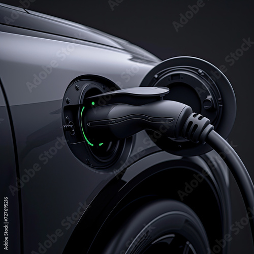 Electric vehicle charging power source. Electric car charging station. Close-up of the power supply connected to an electric car undergoing charging