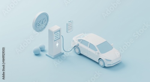 Electric vehicle charging station animation modern setting digital art minimalist design clean energy concept