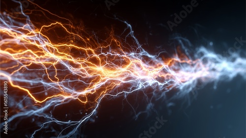 Electrical energy display: The visual shows a dynamic abstract of powerful orange and blue electrical bolts, symbolizing the raw, dynamic essence of raw energy.